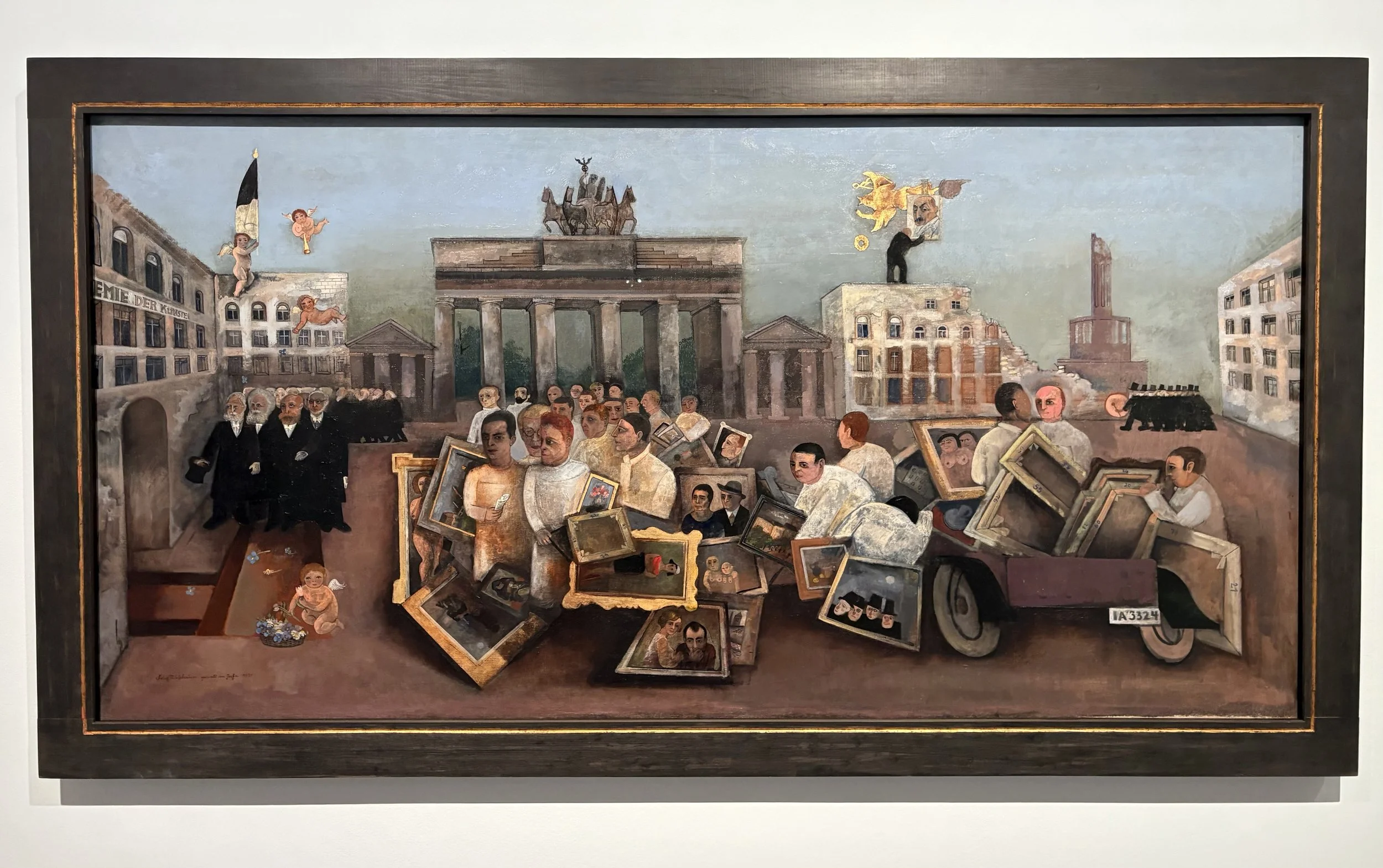 I saw Felix Nussbaum’s The Folly Square today at the Berlinische Galerie. Painted in 1931, it shows the Brandenburg Gate as stage and witness: professors in black march into the Academy, young artists drag their work into the square, and above it all the quadriga hovers. Once a Prussian emblem, then Napoleon’s trophy, later reclaimed and redefined. The quadriga embodies Berlin’s unsettled history of power and display.